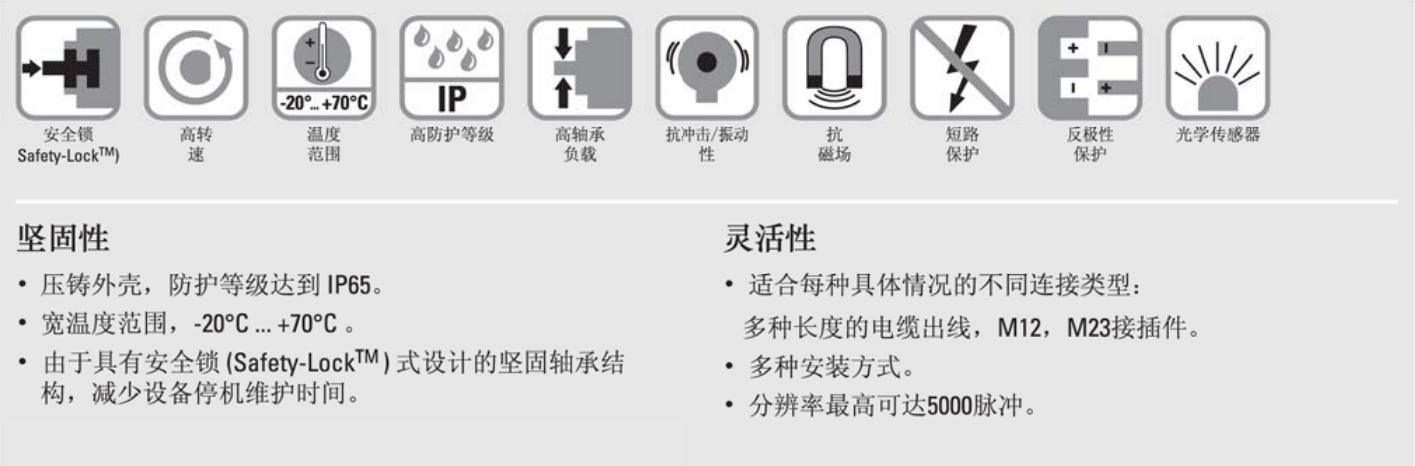 Sendix Base KIS50 / KIH50系列也配置了可靠的安仝鎖( Safety-Lock? )結(jié)構(gòu),具有更高的防安裝誤差特性,提高了編碼器的整體性能