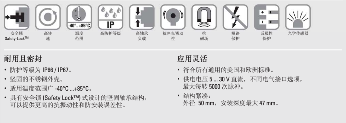 不銹鋼標準型光學增量式編碼器 增量型Sendix編碼器5006/5026采用不銹鋼材質,具有很好的材料抗性,因此非常耐用 高密封級別,防護等級IP66 / IP67 寬溫度范圍下的適應性確保了設備的氣密性與堅固性 分辨率每圈5000次脈沖 軸或軸套選擇,直徑可達10mm,3/8"軸,帶平面 咨詢熱線:18668169779 在線咨詢 產品詳細 上一篇:高分辨率標準型光學增量式編碼器 下一篇:防爆型標準型光學增量式編碼器 用手機看 拍下二維碼,信息隨身看 試試用手機掃一掃, 在你手機上繼續觀看此頁面。