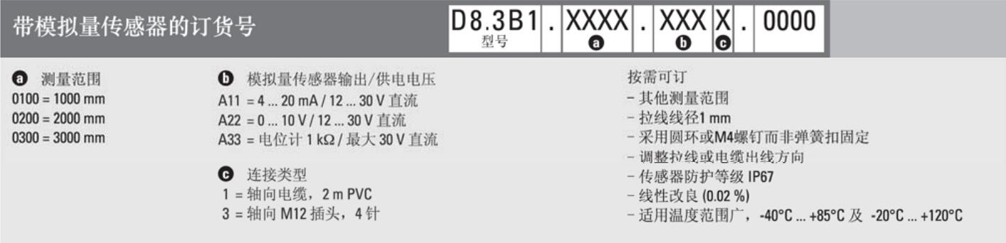 緊湊型拉線編碼器 拉線機構(gòu)B80可選最大3米的測量長度 此款拉線機構(gòu)可與庫伯勒可靠的增量型或絕對型接口的Sendix系列編碼器或模擬量傳感器組合使用 咨詢熱線:18668169779 在線咨詢 產(chǎn)品詳細 上一篇:模擬量拉線傳感器 下一篇:帶編碼器拉繩編碼器 用手機看 拍下二維碼,信息隨身看 試試用手機掃一掃, 在你手機上繼續(xù)觀看此頁面。
